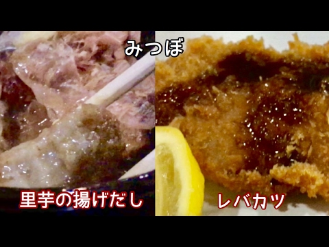 今回は、みつぼさんで、アツアツの里芋の揚げだしとレバカツをいただきます!里芋の揚げだしを食べると、ほっと落ち着きます。薄暗い雰囲気...