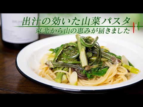 出展:Youtube山菜パスタ。一口一口、味わい深く。最高の和風パスタだと思います【 料理レシピ 】