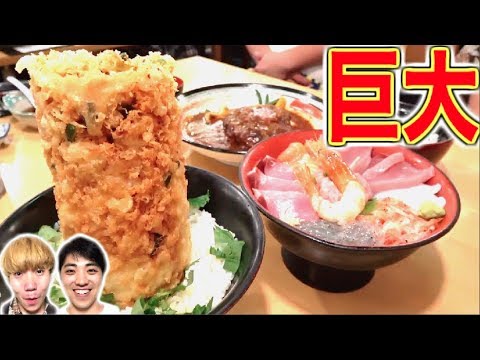 出展:Youtube【大食い】高さ20cm超えの巨大かき揚げ丼&海鮮丼を食べ尽くす【沼津港】